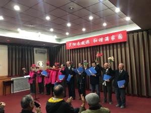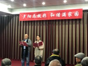 3、10月28日精心组织文艺演出,老同志们欢聚一堂,以丰富多彩的节目共度重阳节。节目有小合唱、诗朗诵、独唱、时装表演、甩手养生功等,中国农业大学的学子们前来表演,奉献爱心。精彩节目引来阵阵掌声,现场气氛热烈。本次活动丰富了老同志的精神文化生活,使他们愉悦了身心,传递了感情,增进了友谊。