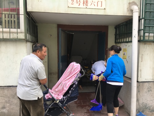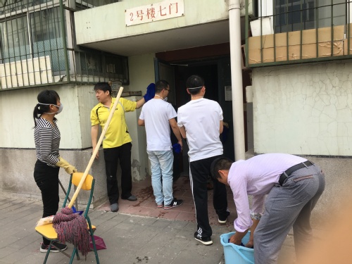 由于今春沙尘暴频发,老同志的楼道内落土严重。全体人员历时2小时,不怕脏、不怕累,合理分工,各司其责,认真清扫每个楼道的卫生死角。彻底清扫了楼道扶手、楼梯、窗台、玻璃、窗纱和墙面并集中清理了楼道内堆放的杂物,彻底净化了老同志的生活环境。