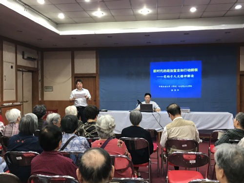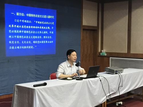 会上,张荣华教授作了题为 《新时代的政治宣言和行动纲领-党的十九大精神解读》、《2018年“两会”精神解读》的报告。报告系统全面、重点突出,语言清新、深入浅出,从新方位、新思想、新判断、新使命、新目标这五个方面对党的十九大精神作了深刻阐释和深入解读;同时,又从《中华人民共和国宪法修正案》、习近平在小组会上阐述的重点问题这两个方面以2018年“两会”精神进行了解读。报告会后,全体党员体会至深、信心满怀、备受鼓舞,纷纷表示,张荣华教授的辅导,让大家对党的十九大精神及2018年“两会”精神有了更为准确、系统和深刻的了解和把握。