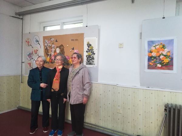 本次展览展出二十多位老师的艺术作品,有精美的十字绣、丝带绣,有大气脱俗的绢花,实用的团扇、宫灯,有精彩的摄影作品,淡雅的绘画作品,精致的编织品,还有老同志刚刚尝试的葫芦画。老同志们纷纷前往驻足欣赏,细细品味,研究技艺,互相切磋,还有老同志在自己的作品前合影留念。