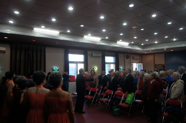 演出在石板房小区银发合唱队的歌声中拉开帷幕,他们常年坚持唱歌,训练有素。