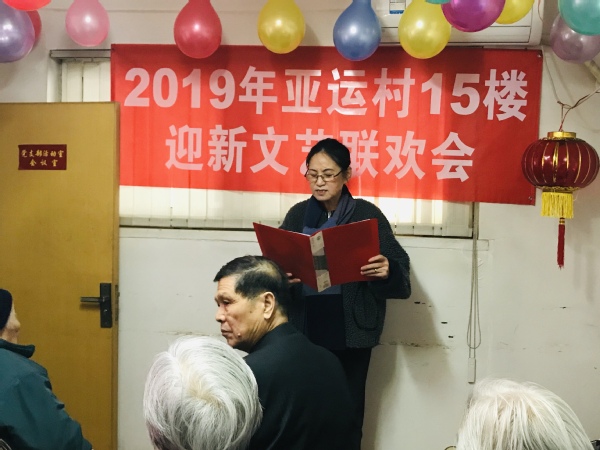 文艺联欢会在陈月明老师的祝词中拉开帷幕,陈老师回顾了2018年国家取得的成绩及亚运村支部度过的不平凡的一年,同时展望2019年美好前景,预祝大家在2019年阖家安康!诸事顺利!生活幸福!北办工作人员杨锦首先把李国主任的祝福送给大家,并感谢老师们多年来对北办工作的支持与鼓励,祝愿大家幸福安康!吉祥如意!新春快乐!