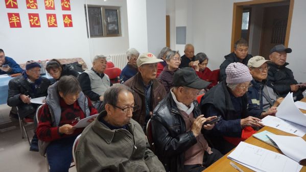 11月24日北京科技大学志愿者钟弘同学讲了苐二讲:微信(下),包括如何进行视频聊天、如何多人聊天、如何清缓存和发红包以及如何绑定银行卡。参加培训的老人有20人,讲课后在志愿者的辅导和帮助下,对讲课内容在手机上进行操作。会上发了学习资料,老人们积极性都很高,92岁高龄的李奉孝老师也来了,并和志愿者亲切交谈。黄大夫说,今天学会了视频聊天,特别高兴。很多老师到了结束的时间还在和志愿者交谈请教。