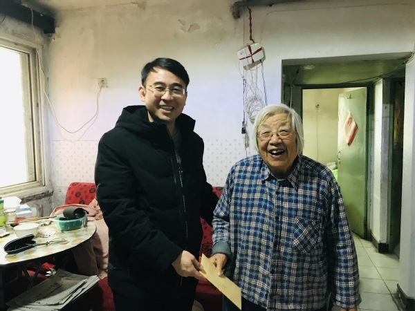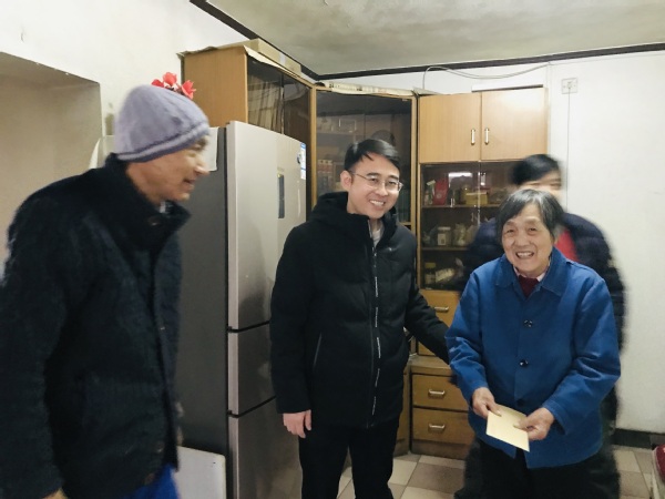 工作人员身披雪花,在付兴盛副主任的带领下,针对重病、家庭生活困难的老同志,深入家中、病床前开展慰问,鼓励他们保持良好心态,安心养病,积极治疗,并送上慰问金和真挚的新年祝福,把学校的关爱送到他们心坎儿上,老同志们也纷纷表达了对学校和组织的感谢之情。