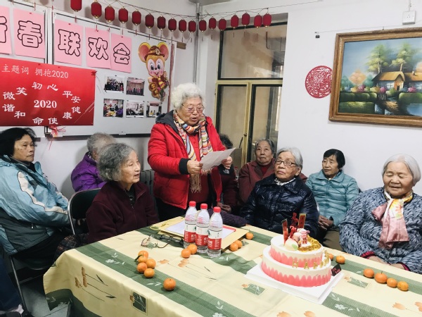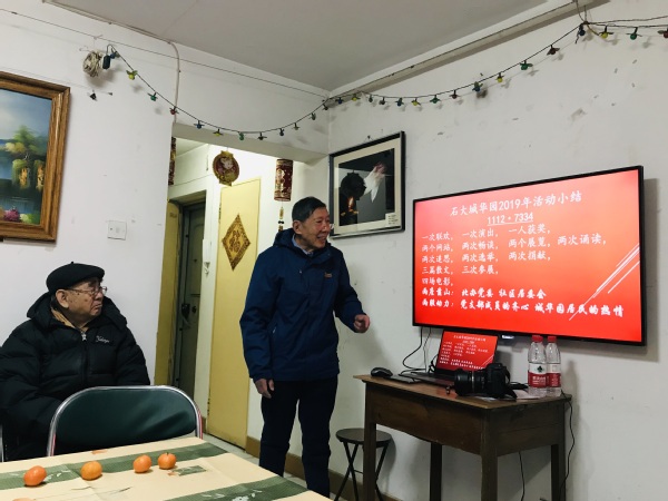 城华园小区党支部书记史乃立老师用PPT的形式总结2019年党支部开展的各项活动,在新的一年里,将把“初心、使命、平安、健康、微笑、和谐”贯穿于工作始终。必赢776net付兴盛主任送上新年美好祝福。大家集体合影后,有的老师唱起《我为祖国献石油》;有的老师通过参观文昌火箭发射中心的切身体会,为祖国的日益强大、科技发展感到自豪;有的老师教大家手指操预防脑中风;有的老师朗读诗歌抒发感情;还有猜字、猜歇后语的轻松游戏。杨淑昌老师深情诵读自己创作的《90岁 我来了》,抒发内心用从容、淡定的心态迎接90岁的来临。联欢会的最后一个环节,是集体品尝生日蛋糕,美美的味道、浓浓的年味,令人回味无穷。