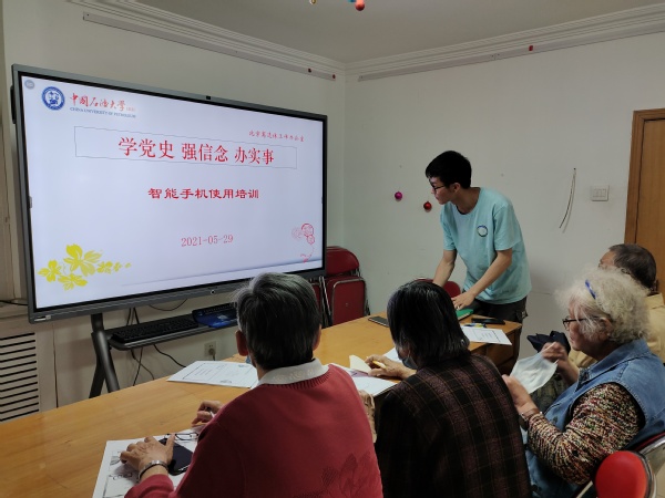 2021年5月29日,星期六。亚运村15楼智能手机使用培训讲座《第五讲网上交水电费》开讲。