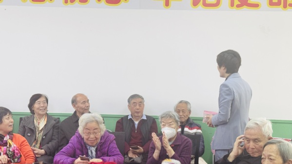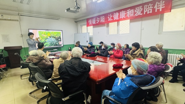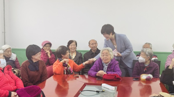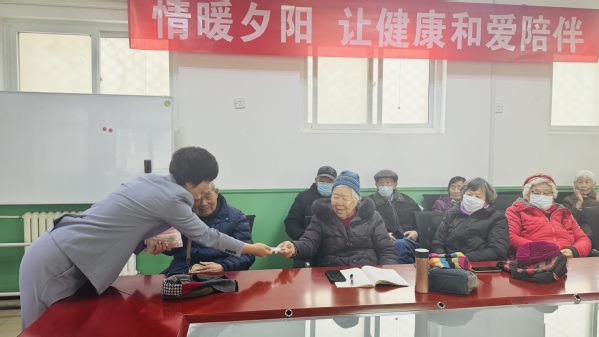 互动环节中,凌老师邀请在座的每位宝藏老人,分享一条日常自我关爱的生活方式。老同志们踊跃发言,积极分享,李玉琛老师每天坚持走一万步,张秀华老师跳广场舞,高崴老师坚持唱歌三年了,王桂芬老师阅读报纸,大家领到小礼物都非常开心。