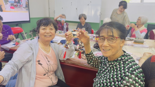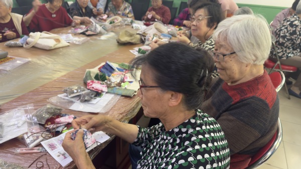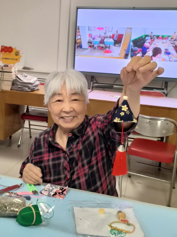 经过一小时的精心制作,一个个造型精美、色泽鲜艳、香气四溢、饱含心意的香囊陆续完成。老同志们互相展示作品,拍照留念,脸上洋溢着幸福的笑容。