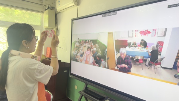 指导老师通过腾讯会议,线上为亚运村的老同志详细讲解制作过程。