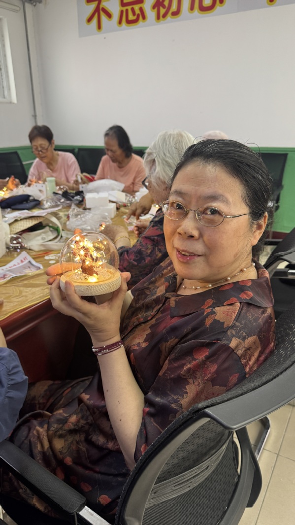 制作过程中,现场气氛热烈而温馨。老同志们一边制作小夜灯,一边回忆往昔峥嵘岁月,分享自己与党的故事,引发了其他老同志的共鸣。大家纷纷表示,虽然已经离开工作岗位,但对党的忠诚和热爱始终如一,为祖国如今的繁荣昌盛感到无比自豪。