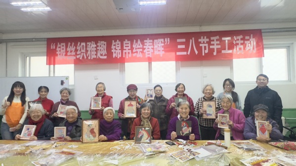 经过一个半小时的精心制作,一幅幅色彩斑斓、意趣盎然的织锦画陆续完成,每幅独一无二的作品都饱含着细腻巧思与高雅审美,承载着节日的喜悦与感动。大家手捧节日礼物合影留念,那一方方锦帛,绣的是春意,更是老同志们和美安康的幸福生活;那一根根银丝,织的是雅趣,更是岁月沉淀后的从容与优雅。